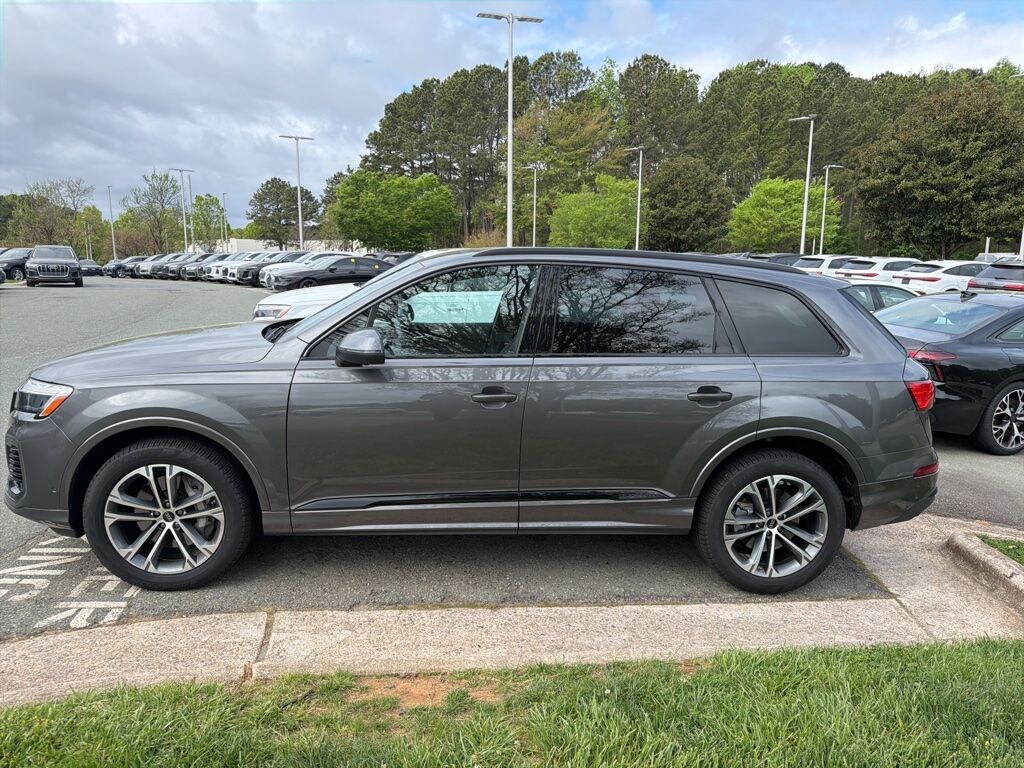 Samurai Gray Metallic 2025 Audi Q7 45 Premium quattro 8-Speed Automatic with Tiptronic 2.0L 4-Cylinder TFSI quattro CARFAX One-Owner. Clean CARFAX. Anthracite Gray Audi Rings, Bang & Olufsen Premium Sound System with 3D Sound, Black Exterior Trim, Convenience Plus Package, Dark Chrome Exhaust Tips, Heated Steering Wheel, LED Interior Lighting Package Plus, Top View Camera System, Traffic Sign Recognition, Wheels: 20" 5-Double-Spoke Bicolor Finish.