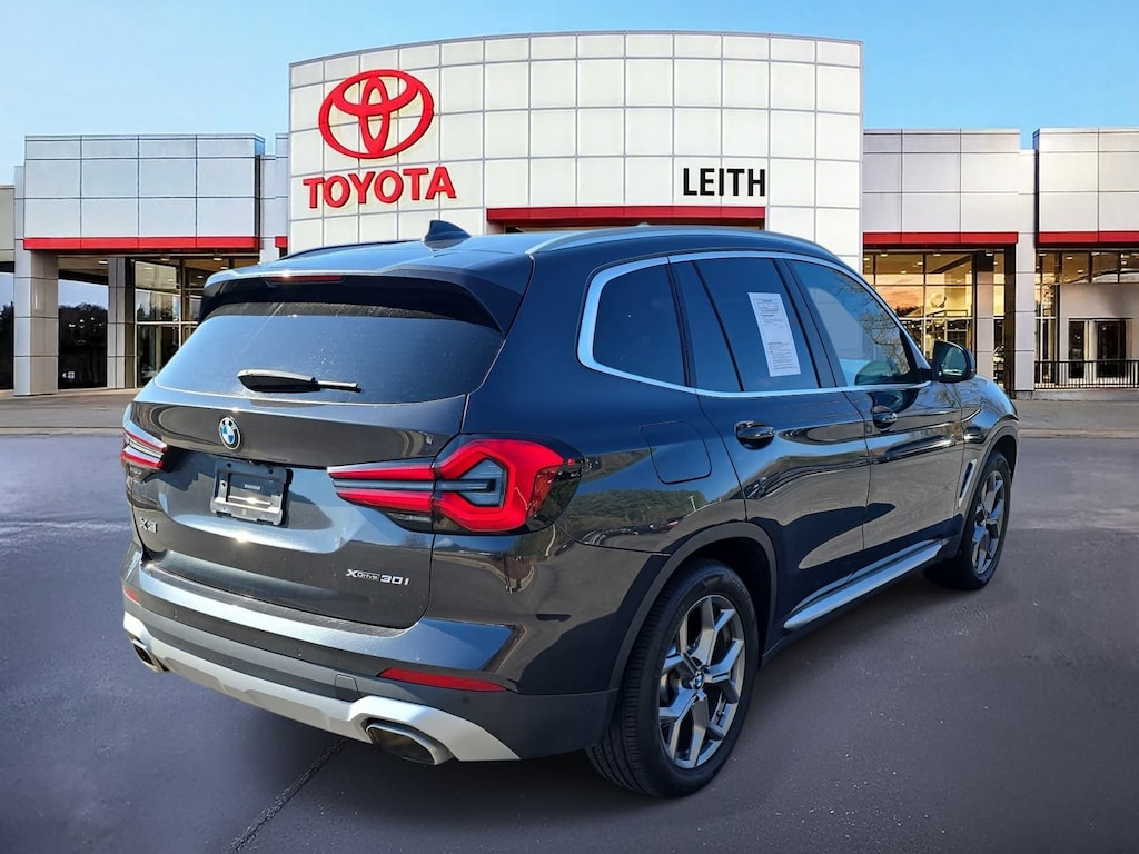 Clean CARFAX. Dark Graphite 2022 BMW X3 xDrive30i AWD 8-Speed Automatic Sport 2.0L I4 TwinPower Turbo Clean Carfax 1 Owner/No Accident Vehicle, LOCAL TRADE IN, BACK UP CAMERA, LEATHER, HEATED SEATS, PANORAMIC SUNROOF, NAVIGATION, BLIND SPOT MONITOR, ALL WHEEL DRIVE, SMART KEY W PUSH BUTTON START, FULL-SPEED RANGE DYNAMIC RADAR CRUISE CONTROL, APPLE CARPLAY & ANDROID AUTO, POWER LIFTGATE, NO ACCIDENTS, MUST SEE!, 8-Speed Automatic Sport, ABS brakes, Air Conditioning, AM/FM radio: SiriusXM with 360L, Apple CarPlay & Android Auto Compatibility, Auto High-beam Headlights, Auto-dimming Rear-View mirror, Comfort Access Keyless Entry, Connected Package Pro, Electronic Stability Control, Exterior Parking Camera Rear, Fine Wood Open-Pored Ash Grain Trim, Four wheel independent suspension, Front dual zone A/C, Fully automatic headlights, Garage door transmitter, Genuine wood dashboard insert, Genuine wood door panel insert, Heated Front Seats, Lumbar Support, Memory seat, Navigation System, Panoramic Moonroof, Perforated SensaTec Upholstery, Power driver seat, Power Liftgate, Power steering, Power windows, Rain sensing wipers, Rear air conditioning, Steering wheel mounted audio controls, Telescoping steering wheel, Traction control, Turn signal indicator mirrors, Wheels: 19 x 7.5 Y-Spoke (Style 693).