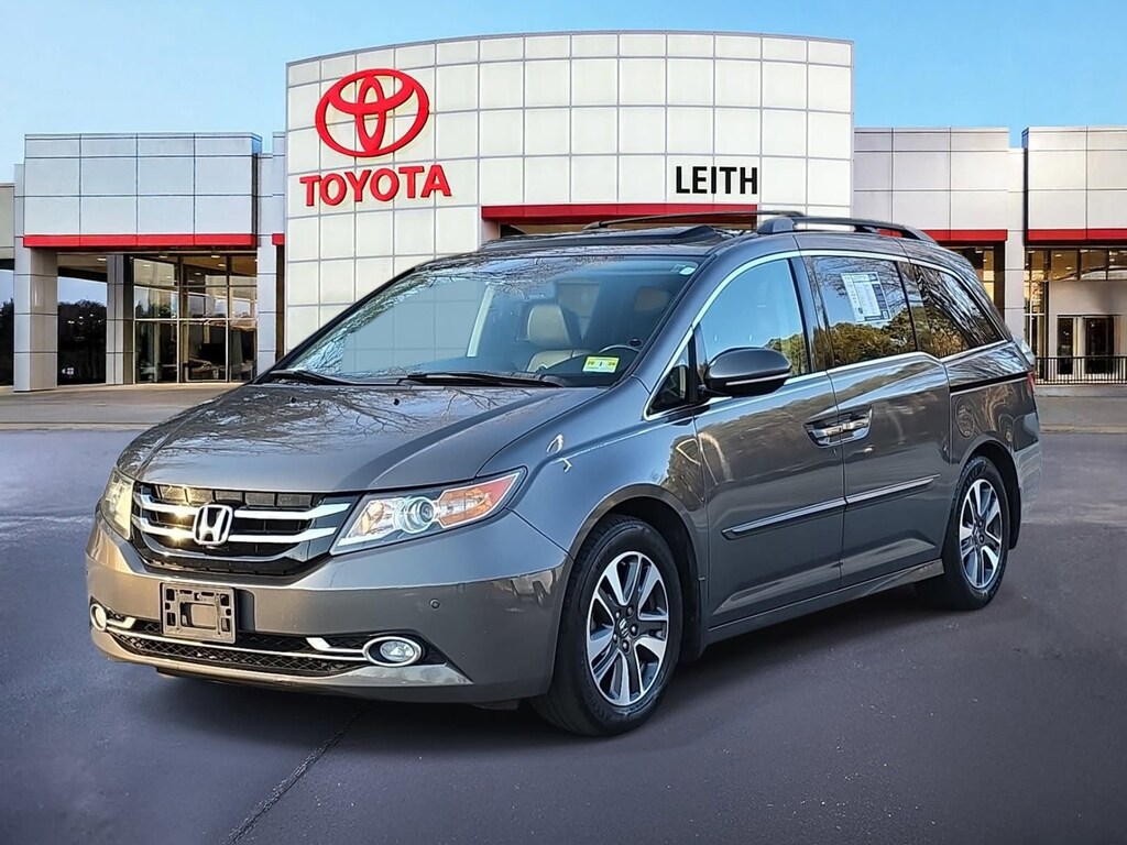CARFAX One-Owner. Smoky Topaz Metallic 2015 Honda Odyssey Touring FWD 6-Speed Automatic 3.5L V6 SOHC i-VTEC 24V AS IS CAR, LOCAL TRADE IN, BACK UP CAMERA, LEATHER, HEATED SEATS, NAVIGATION, THIRD ROW SEAT, POWER LIFTGATE, MUST SEE TO APPRECIATE!, 18 x 7 Alloy Wheels, 3rd row seats: split-bench, ABS brakes, Air Conditioning, AM/FM/CD Audio System w/7 Speakers, Anti-whiplash front head restraints, Automatic temperature control, Delay-off headlights, Driver's Seat Mounted Armrest, Electronic Stability Control, Exterior Parking Camera Rear, Four wheel independent suspension, Front dual zone A/C, Front fog lights, Garage door transmitter: HomeLink, Heated Front Bucket Seats, Leather Shift Knob, Leather steering wheel, Low tire pressure warning, Memory seat, Navigation System, Passenger seat mounted armrest, Power driver seat, Power Liftgate, Power moonroof, Power passenger seat, Power steering, Power windows, Rear air conditioning, Rear audio controls, Rear seat center armrest, Rear window defroster, Rear window wiper, Reclining 3rd row seat, Speed-sensing steering, Steering wheel mounted audio controls, Telescoping steering wheel, Turn signal indicator mirrors, Variably intermittent wipers.