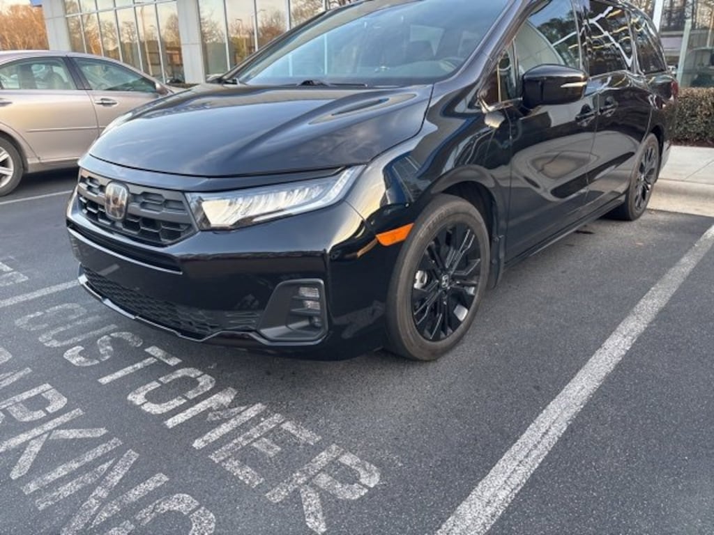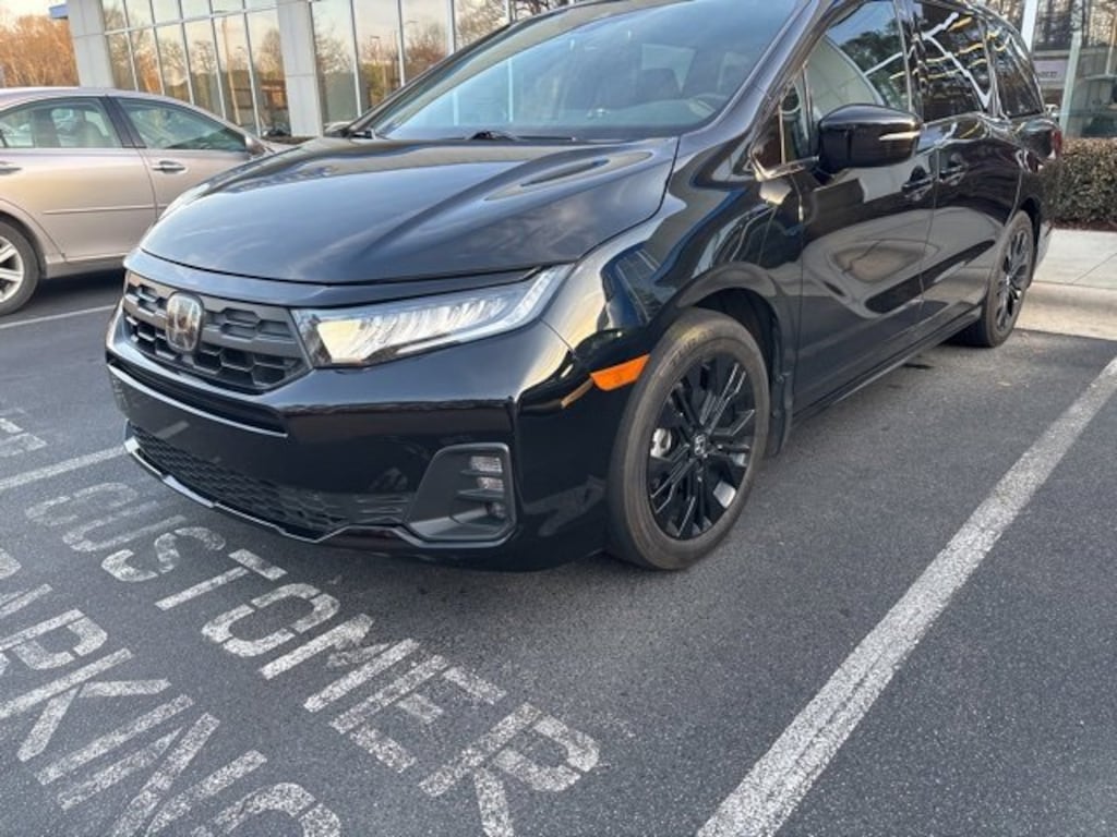 Clean CARFAX. CARFAX One-Owner. Crystal Black Pearl 2025 Honda Odyssey Sport-L FWD 10-Speed Automatic 3.5L V6 SOHC i-VTEC 24V 3rd row seats: split-bench, 4-Wheel Disc Brakes, 7 Speakers, ABS brakes, Adaptive Cruise Control: Adaptive Cruise Control (ACC) with Low-Speed Follow, Air Conditioning, AM/FM radio: SiriusXM, Apple CarPlay/Android Auto, Auto High-beam Headlights, Auto-dimming Rear-View mirror, Automatic temperature control, Blind Spot Information (BSI) System warning, Brake assist, Driver's Seat Mounted Armrest, Electronic Stability Control, Exterior Parking Camera Rear, Four wheel independent suspension, Front dual zone A/C, Garage door transmitter: HomeLink, Heated door mirrors, Heated Front Bucket Seats, Lane departure: Lane Keeping Assist System (LKAS) active, Memory seat, Power driver seat, Power Liftgate, Power moonroof, Power steering, Radio: 160-Watt AM/FM/HD/SiriusXM Audio System, Remote keyless entry, Speed-sensing steering, Steering wheel mounted audio controls, Tachometer, Telescoping steering wheel, Tilt steering wheel, Traction control, Trip computer, Variably intermittent wipers, Wheels: 19" Gloss Black Alloy.