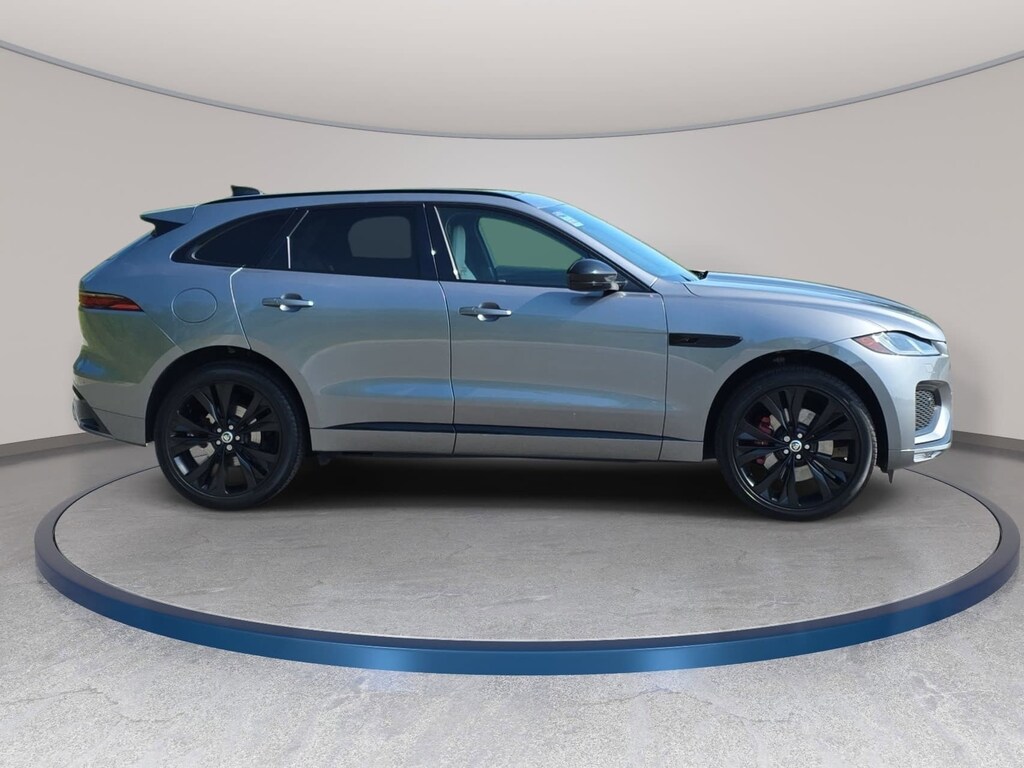 Clean CARFAX. Certified. Eiger Grey Metallic 2025 JAGUAR F-PACE P400 R-Dynamic S AWD 8-Speed Automatic 3.0L I6 Turbocharged OWNED BY DEALER, BACK UP CAMERA, LEATHER, HEATED SEATS, COOLED SEATS, PANORAMIC SUNROOF, 4-WHEEL DRIVE, SMART KEY W PUSH BUTTON START, DYNAMIC RADAR CRUISE CONTROL, LANE DEPARTURE ALERT W STEERING ASSIST, BLIND SPOT MONITOR W REAR CROSS TRAFFIC ALERT, POWER LIFTGATE, MEMORY SEAT, HOMELINK GARAGE DOOR TRANSMITTER, FRONT & REAR PARKING SENSORS, 1-OWNER, NO ACCIDENTS, MUST SEE!, INTERACTIVE DRIVER DISPLAY, 22" STYLE GLOSS BLACK WITH SATIN BLACK INSERT WHEELS, RED BRAKE CALIPERS, ABS brakes, Adaptive suspension, Apple CarPlay/Android Auto, Auto High-beam Headlights, Auto tilt-away steering wheel, Automatic temperature control, Compass, Exterior Parking Camera Rear, Front dual zone A/C, Fully automatic headlights, Garage door transmitter: HomeLink, Heated steering wheel, Illuminated entry, Leather Shift Knob, Memory seat, Navigation system: Pivi Pro (Connected Navigation), Perforated DuoLeather Seat Trim, Power Liftgate, Power moonroof, Power passenger seat, Radio: Meridian 650W Surround Sound System, Rain sensing wipers, Split folding rear seat, Sport steering wheel, Steering wheel mounted audio controls, Traction control, Turn signal indicator mirrors.