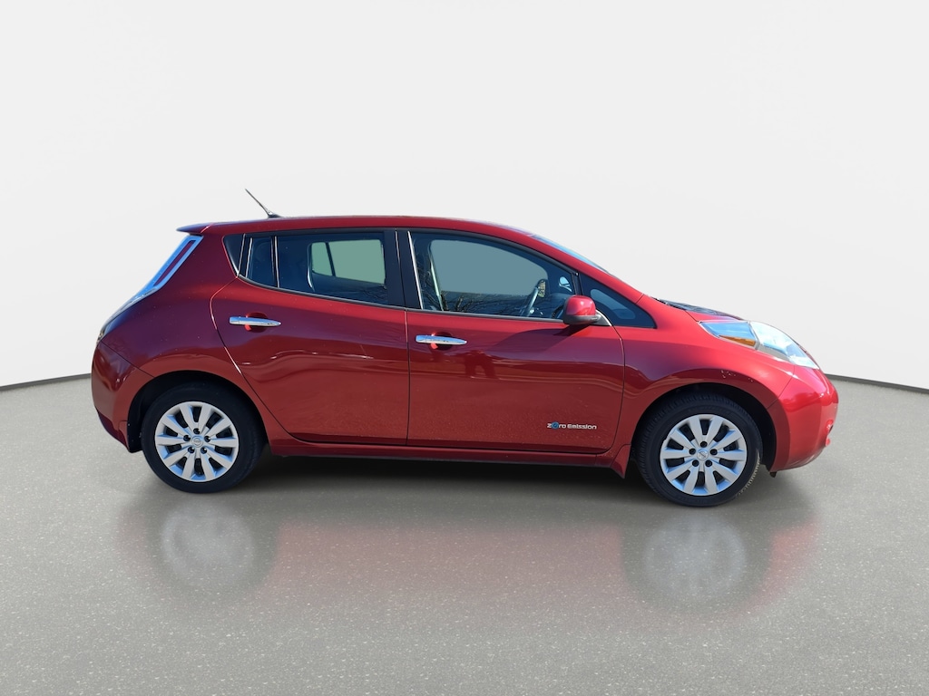 Cayenne Red Metallic 2013 Nissan Leaf S 80kW AC Synchronous Motor 16" Steel Wheels w/Covers, 4 Speakers, 4-Wheel Disc Brakes, ABS brakes, Air Conditioning, AM/FM radio: SiriusXM, Anti-whiplash front head restraints, Automatic temperature control, Brake assist, Bumpers: body-color, CD player, Charger Package, Cloth Seat Trim, Driver vanity mirror, Dual front impact airbags, Dual front side impact airbags, Electronic Stability Control, Floor Mats & Cargo Area Mat, Front anti-roll bar, Front Bucket Seats, Front Center Armrest, Front reading lights, Front wheel independent suspension, Heated Front Bucket Seats, Illuminated entry, Leather steering wheel, Low tire pressure warning, Occupant sensing airbag, Outside temperature display, Overhead airbag, Overhead console, Panic alarm, Passenger vanity mirror, Power door mirrors, Power steering, Power windows, Radio: AM/FM/Single In-Dash CD/MP3/WMA, Rear anti-roll bar, Rear window defroster, Rear window wiper, Rearview Monitor, Remote keyless entry, Security system, Speed-sensing steering, Splash Guards, Split folding rear seat, Spoiler, Steering wheel mounted audio controls, Tilt steering wheel, Traction control, Trip computer, Variably intermittent wipers.