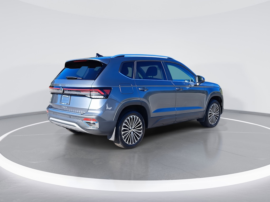 Certified. Platinum Gray Metallic 2025 Volkswagen Taos 1.5T SE FWD 8-Speed Automatic with Tiptronic 1.5L I4 Turbocharged DOHC 16V LEV3-SULEV30 174hp Local Trade, Non-Smoker, Serviced Here, Purchased Here, Certified Warranty - 2 Years / 24,000 Miles, Active Blind Spot Monitor, AM/FM radio: SiriusXM with 360L, Automatic temperature control, Brake assist, CloudTex & Cloth Seating Surfaces, Electronic Stability Control, Emergency communication system: VW Car-Net Safe & Secure 5-year, Exterior Parking Camera Rear, Front dual zone A/C, Heated Front Bucket Seats, Radio: MIB3 Composition Media AM/FM/HD, Rain sensing wipers, Rear window wiper, Speed-sensing steering, Split folding rear seat, Traction control, Wheels: 18" 2-Tone Machined Alloy.
