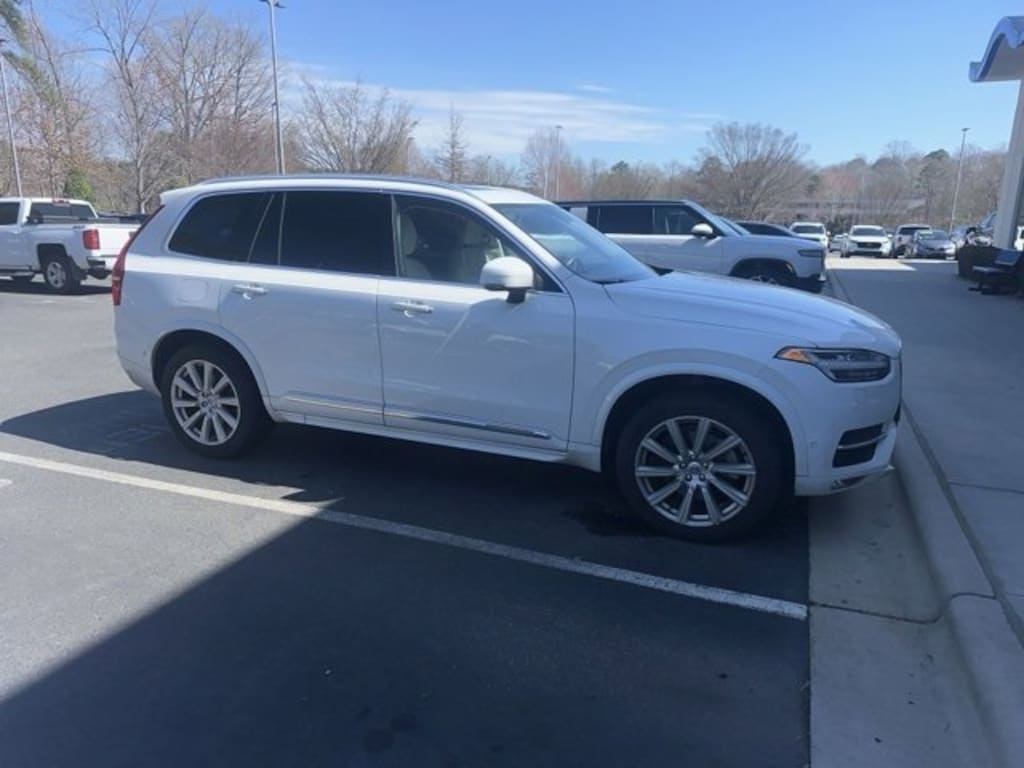 Clean CARFAX. CARFAX One-Owner. Crystal White Pearl 2016 Volvo XC90 T6 Inscription AWD Automatic with Geartronic I4 Supercharged 4-Wheel Disc Brakes, ABS brakes, Alloy wheels, Anti-whiplash front head restraints, Dual front impact airbags, Dual front side impact airbags, Electronic Stability Control, Emergency communication system, Front anti-roll bar, Front dual zone A/C, Heated & Ventilated Front Bucket Seats, Heated door mirrors, Heated front seats, Illuminated entry, Low tire pressure warning, Navigation System, Occupant sensing airbag, Overhead airbag, Power Liftgate, Power moonroof, Rear anti-roll bar, Rear dual zone A/C, Remote keyless entry, Traction control.